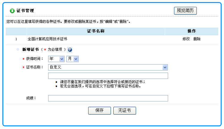 1) 盡可能詳細地完善您的簡歷,特別是工作經(jīng)歷、個人自我評估、專長等重要信息,使用人單位能夠更好地了解您。